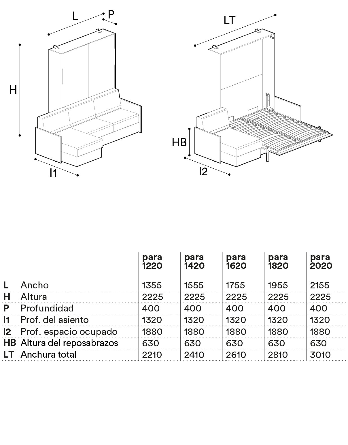 El mecanismo del sofá oculto está compuesto por una estructura metálica completa con mecanismos y bayonetas para aplicar a la puerta abatible de la cama. Con asiento de lamas multicapa, el sofá oculto es completamente plegable y no es necesario retirar ningún cojín durante la apertura o el cierre. Este sistema permite crear un sofá oculto con una altura de asiento de 46 cm, como un sofá estándar, respetando todos los volúmenes de acolchado para garantizar el máximo confort. Se suministra sin acolchados ni paneles.